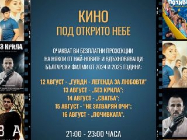 Събитието е безплатно и представя български филми от последните години. Целта на инициативата е подкрепа на българската култура и създаване на възможности за пълноценно лятно преживяване в града.