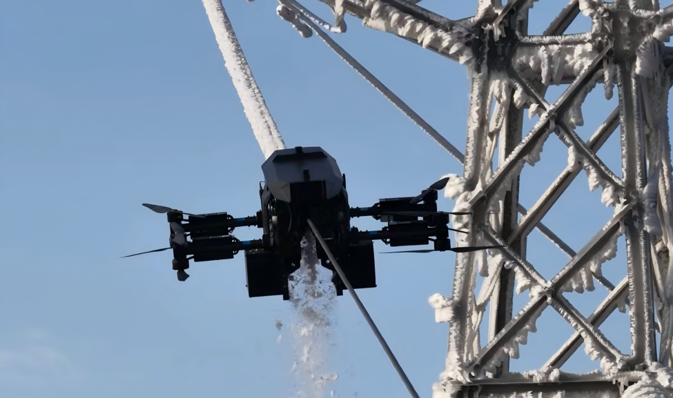 Вътрешно произведен робот, способен да лети до електропроводи и да премахва лед, беше пуснат на работа наскоро в окръг Cili, Zhangjiajie, китайската провинция Хунан, предлагайки ново решение за защита на електрическите мрежи по време на екстремно зимно време.