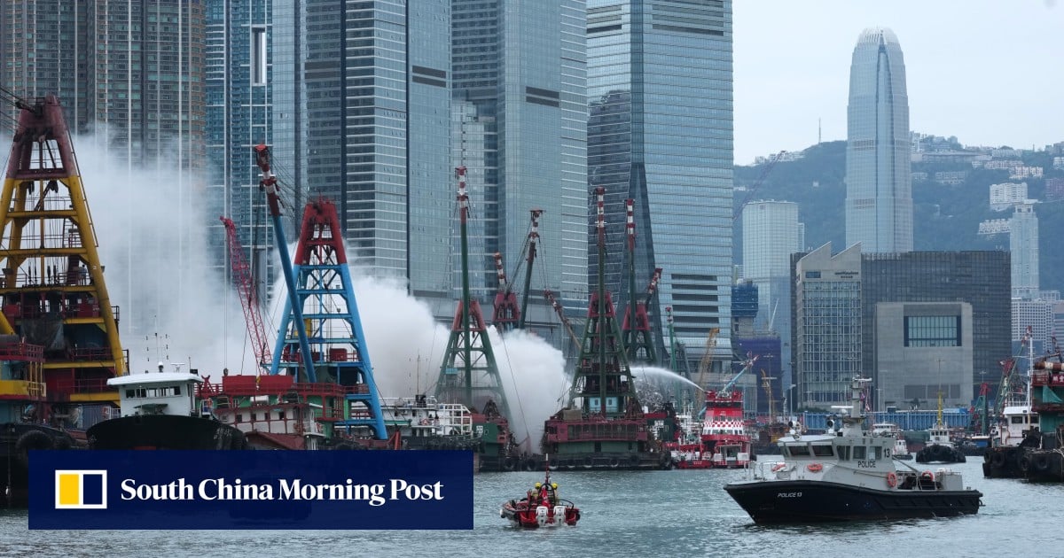 Полицията каза, че е получила сигнал в 12:54 ч., че кораб, акостирал в работната зона за обществени товари New Yau Ma Tei, изпуска дим и се е запалил.