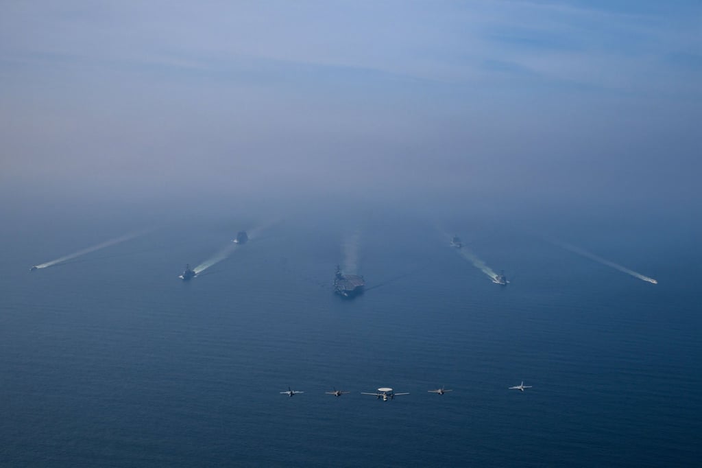 USS Abraham Lincoln води своята ударна група по време на фотоучение в Арабско море. Снимка: ВМС на САЩ чрез Ройтерс