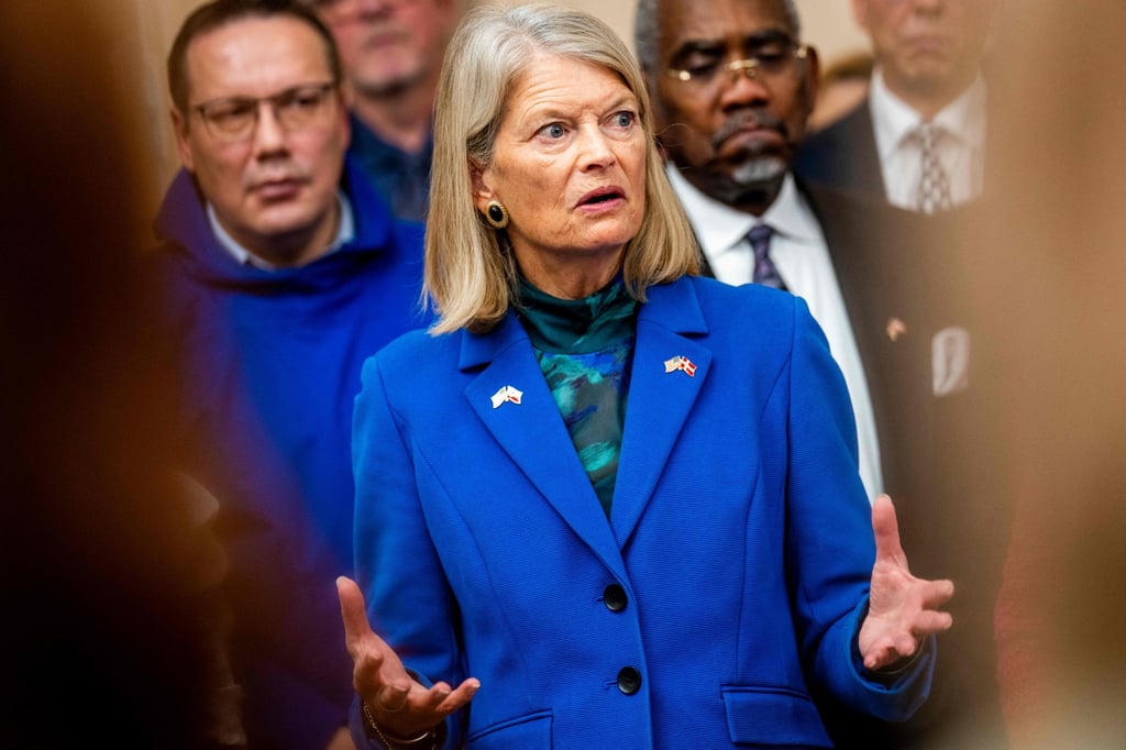 Американският сенатор Лиза Мурковски говори на пресконференция след среща с членове на датския парламент, гренландска комисия и членове на Конгреса на САЩ в Копенхаген, Дания, в петък. Снимка: AFP