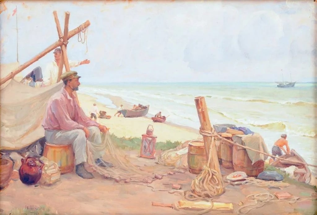 Картината на Иван Шулха от 1932 г. „Рибари на брега на морето“ е сред произведенията на изкуството, липсващи от Херсонския художествен музей. Снимка: Херсонски художествен музей