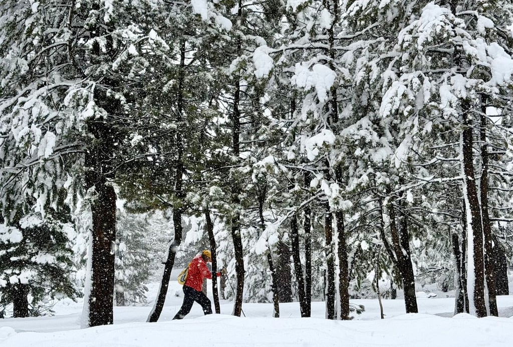Човек кара ски по време на снежна буря в Саут Лейк Тахо, Калифорния, 4 януари. Снимка: TNS