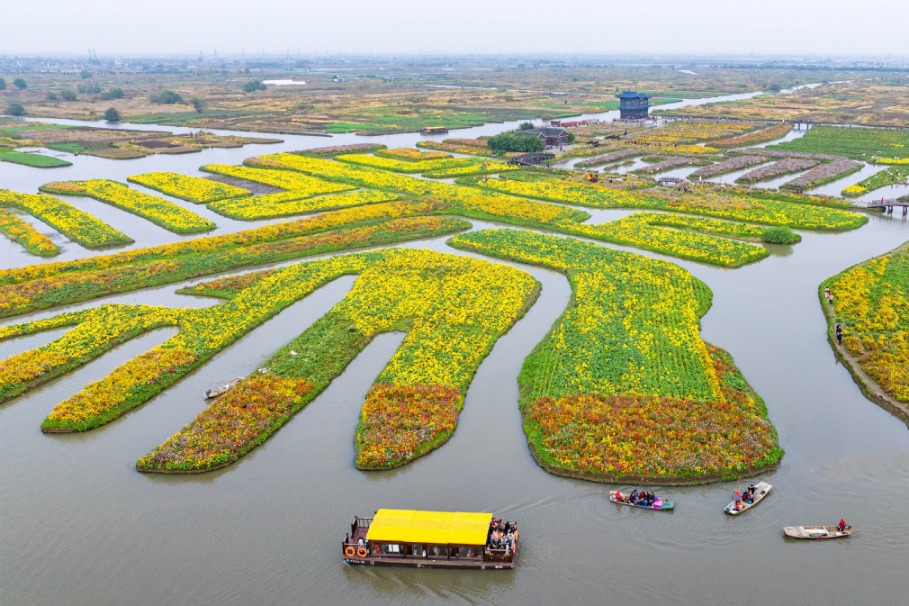 Въздушна снимка с дрон показва туристи, които вземат лодки на живописно място в Синхуа, провинция Дзянсу в Източен Китай, 10 ноември 2025 г. [Photo/Xinhua] Нашия източник е Българо-Китайска Търговско-промишлена палaта