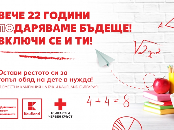 18.09.2025 г. БЪЛГАРСКИЯТ ЧЕРВЕН КРЪСТ И „КАУФЛАНД“ С МИСИЯ ЗА ПО-ДОБРО БЪДЕЩЕ НА ДЕЦАТА Програмата на БЧК „Топъл обяд“ осигурява топла храна за ученици в неравностойно положение. За много от тях тази подкрепа е решаваща, за да останат в училище и да имат шанс за по-добро бъдеще. До 31 октомври т.г. клиентите на хипермаркети „Кауфланд“-България…