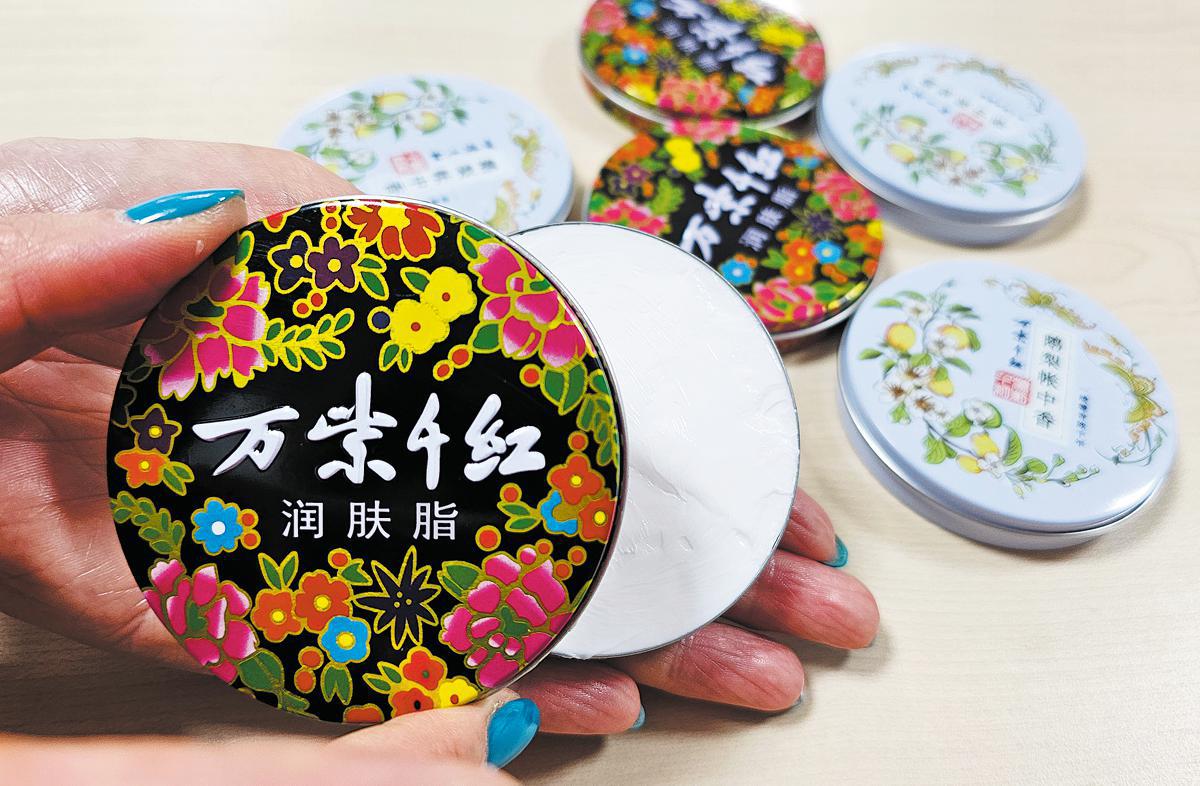 Кутии с хидратиращ крем от наследствената марка Wan Zi Qian Hong, изложени в Пекин в четвъртък. GENG FEIFEI / КИТАЙ ДЕЙЛИ